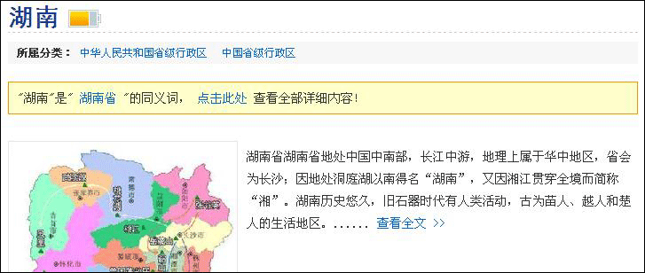 同義詞,是表達的意義相同但是名稱不同的詞條,例如:“北京”和“北京市”是同義詞。為了避免不同用戶提交名稱不同而內(nèi)容相同的詞條,造成資源浪費和重復勞動,互動百科會將概念相同的詞條添加為同義詞,并以其中較為規(guī)范或較為常用的詞條作為標準詞,例如:將“湖南省”作為“湖南”的標準詞。